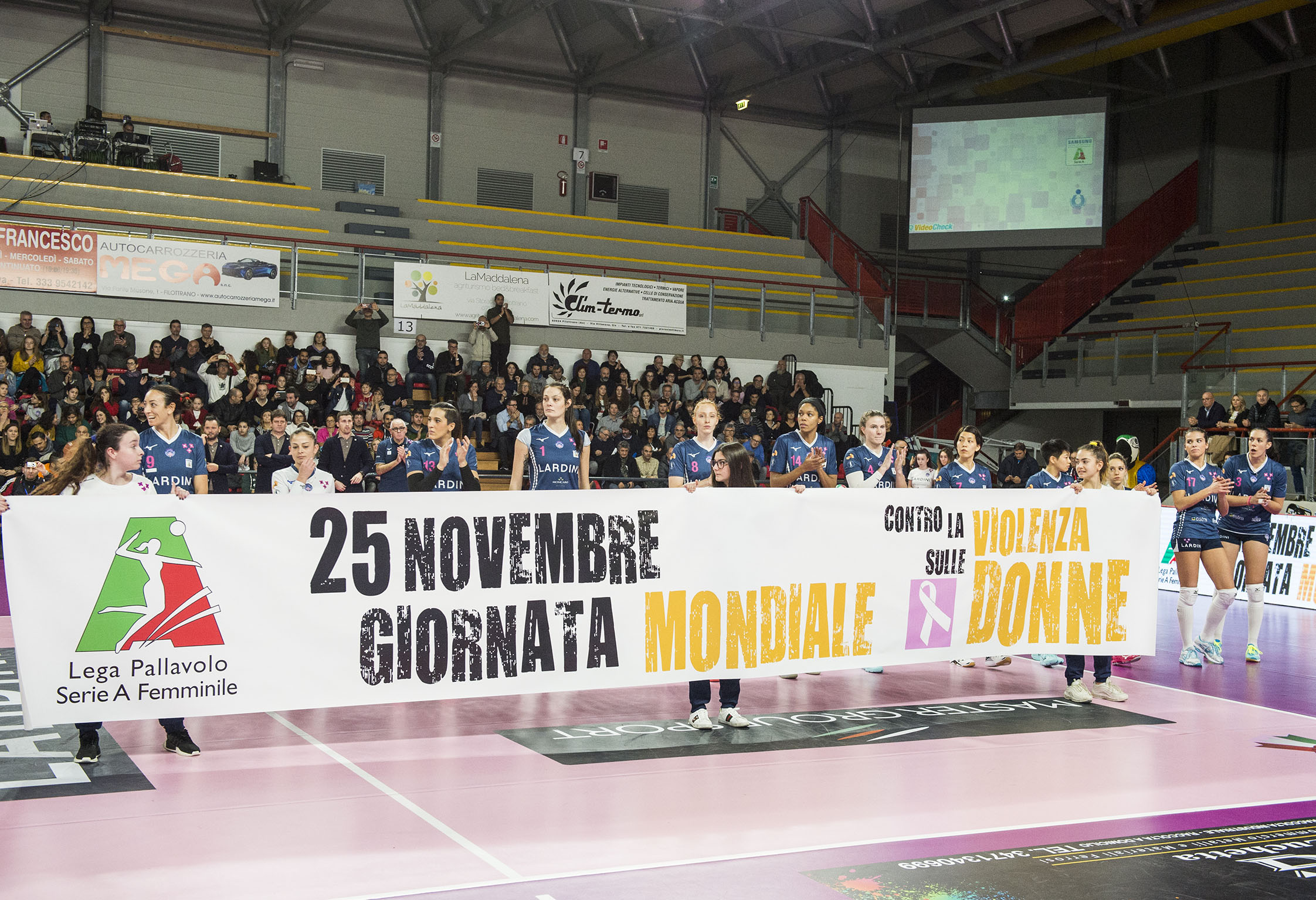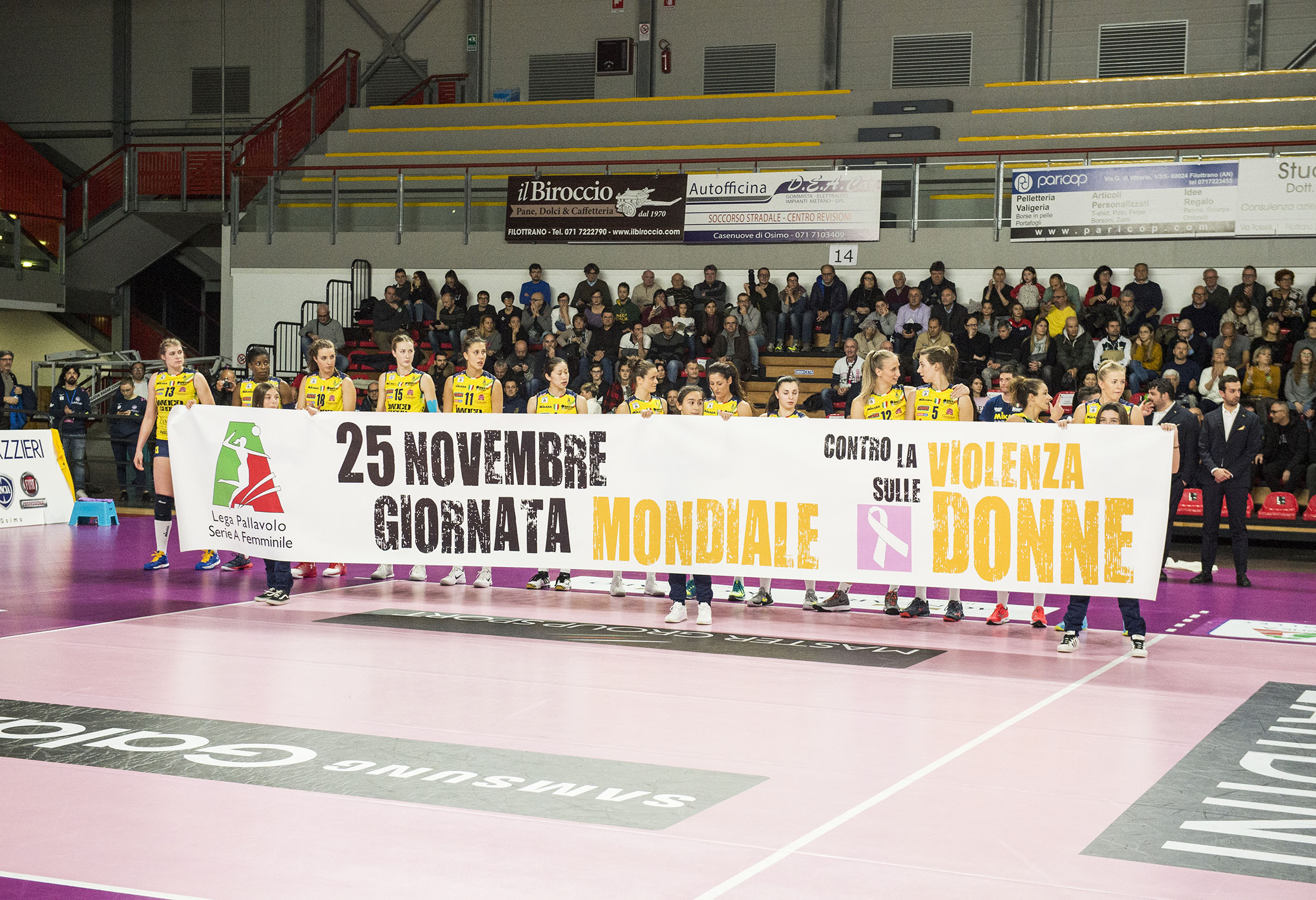 Prima della gara il presidente della Pallavolo Filottrano, Renzo Gobbi, ha omaggiato con un mazzo di fiori le azzurre d’argento Danesi, De Gennaro e Sylla.