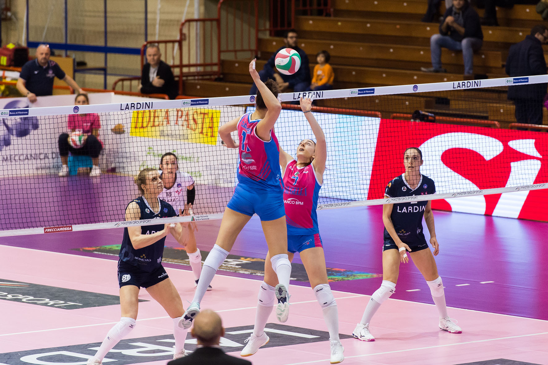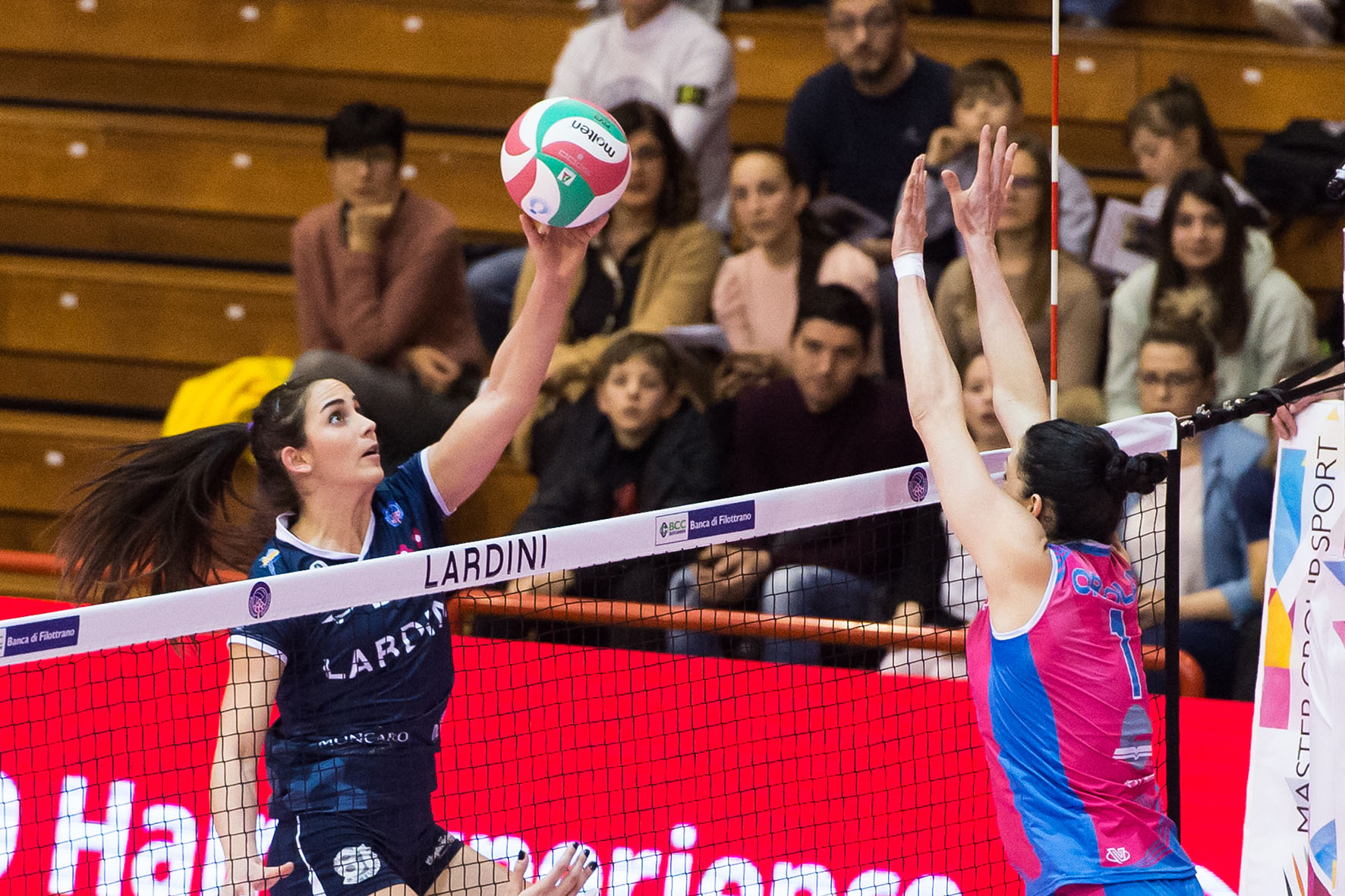 Terza vittoria consecutiva per la Saugella Monza, brava ad espugnare il Palatriccoli di Jesi battendo 3-0 una ostica e ben organizzata Lardini Filottrano nella sesta giornata di ritorno della Serie A1 femminile 2019-2020. La formazione di coach Schiavo prova a tener testa alla squadra ospite che si conferma ostica in tutti i fondamentali soprattutto in attacco (49% vincenti). A giocare un ruolo fondamentale per la Saugella Monza, sono stati inoltre gli sprint degli inizi di primo e secondo set, determinanti per sorprendere una Filottrano mai doma, capace di approcciare bene il terzo parziale. Ancora una volta è stata però la Saugella a risolvere il punto a punto nelle battute finali con Heyrman (4 muri per la belga) a firmare il match-point poi chiuso grazie all’invasione di Bianchini.