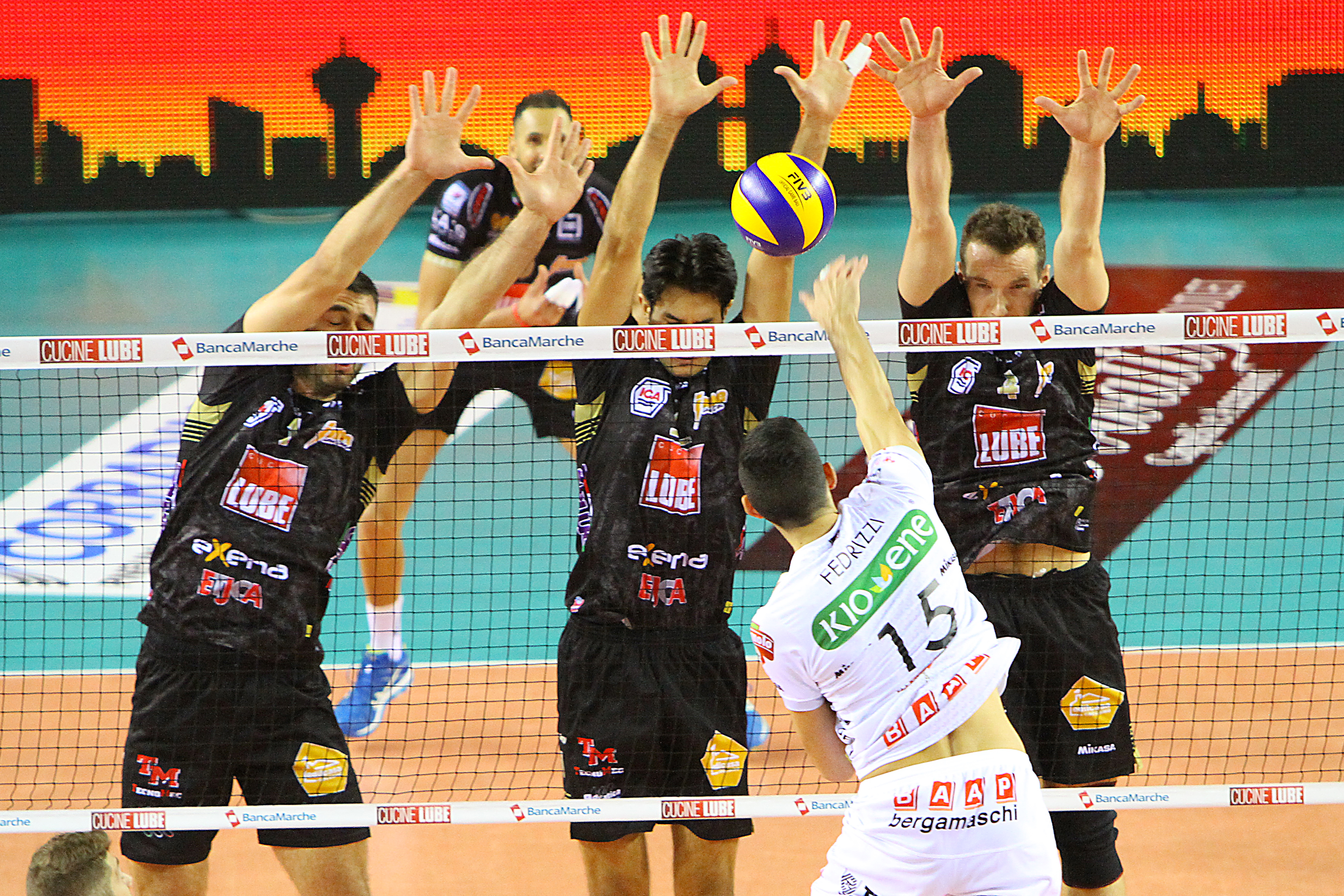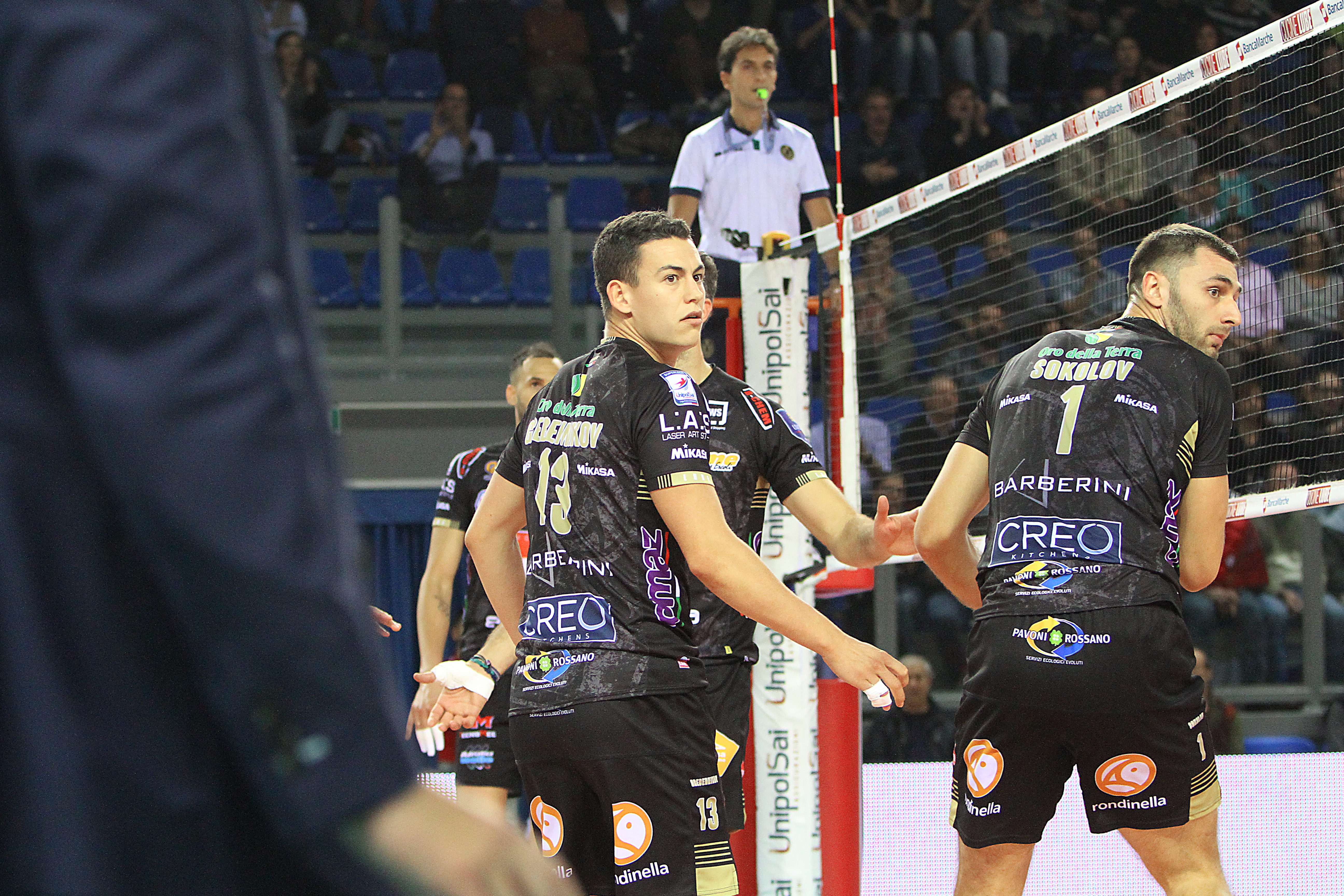 Nel quarto set, l’allenatore biancorosso riconferma Cebulj su Kaliberda e sarà proprio lo schiacciatore sloveno ad essere eletto uomo partita, firmando una serie di attacchi e muri vincenti e permettendo alla Lube di vincere il set (25-14) e volare al tie break.
