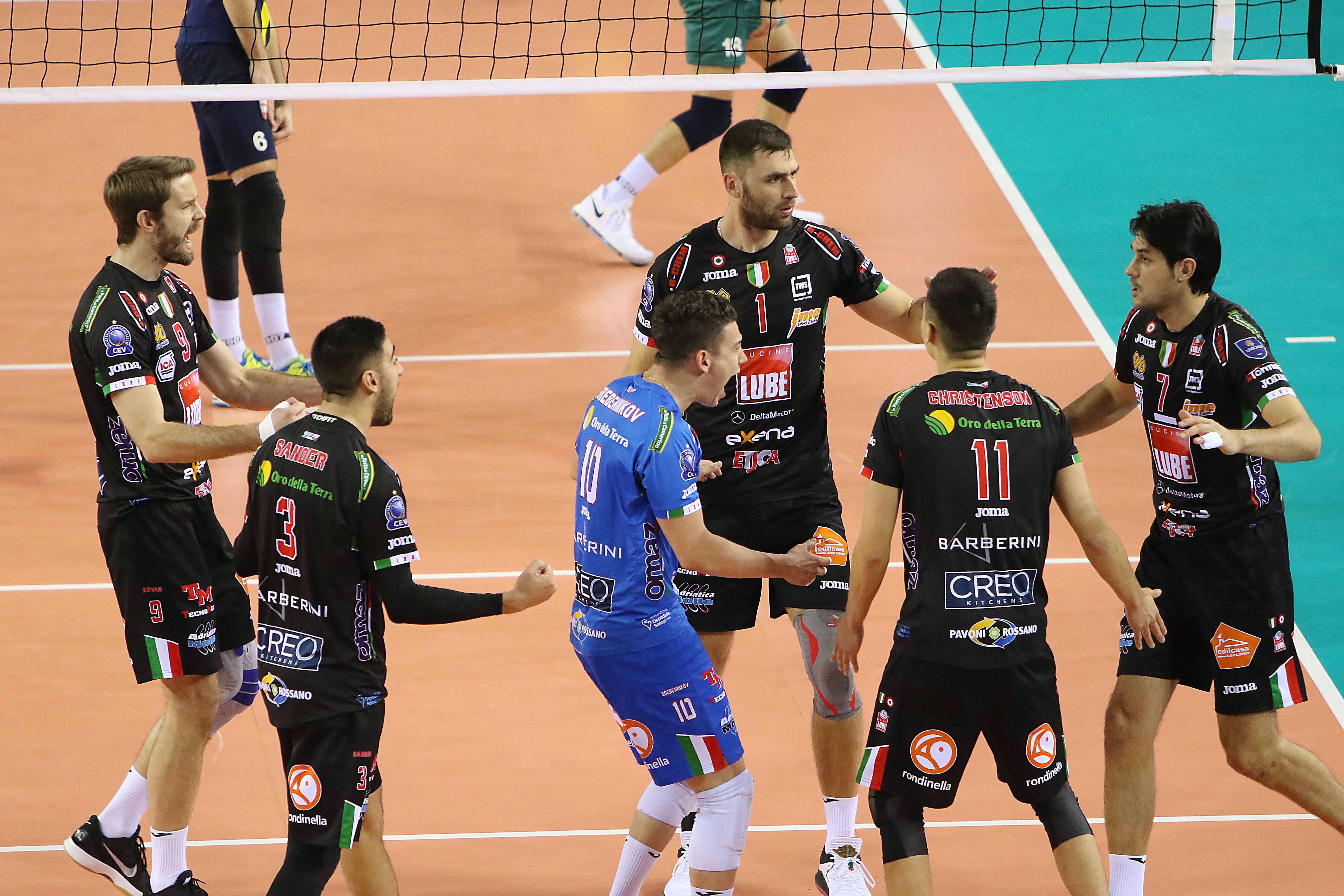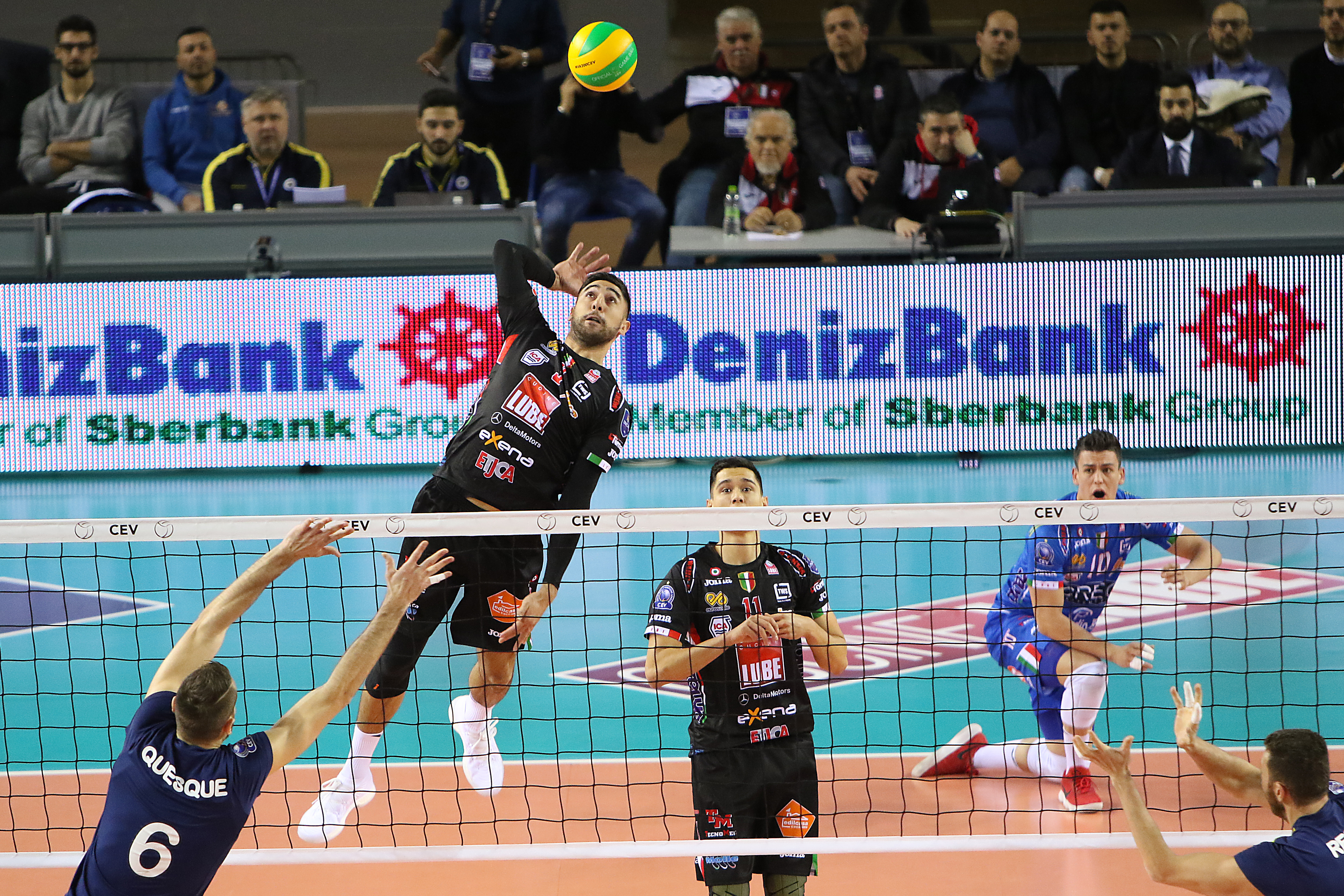 Nel primo set i civitanovesi trovano difficoltà all’inizio ad intascare punti. Il Fenerbahce infatti parte in vantaggio grazie sia alla diagonale vincente di Sket e al successivo ace di Gladyr e sia per i numerosi errori al servizio della padrona di casa. Sul 9-10 la Lube riesce a trovare il pareggio con il primo tempo del capitano, ma gli avversari non demordono e si riportano in vantaggio con l’attacco di Sket.