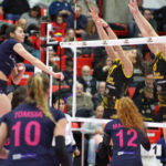 La Lardini mantiene i nervi saldi, approfitta dell’errore al servizio di Ogoms e poi del colpo in attacco di Mitchem per conquistare due set-point (22-24), sul secondo è Mitchem (9 punti nel set) a regalare il 2-1 a Filottrano. La Lardini non molla la presa, Mazzaro mette a terra il quarto muro personale (4-4), Tomsia il punto del primo vantaggio esterno (8-9). La squadra di coach Nica costruisce il break ancora con il muro: Hutinski e Mitchem sono insuperabili (9-12), l’ace corto di Bosio (premiata MVP) e tre punti di fila di Tomsia mettono luce tra le due squadre (13-19). Legnano cerca di restare agganciata con Pencova a muro (16-20) e poi con la neo entrata Bartesaghi (19-22). La Lardini non trema: Bosio di seconda firma il punto numero 24, Mitchem (29 a referto, nuovo record personale) quello del 3-1 che vale il sorpasso in classifica su Legnano.