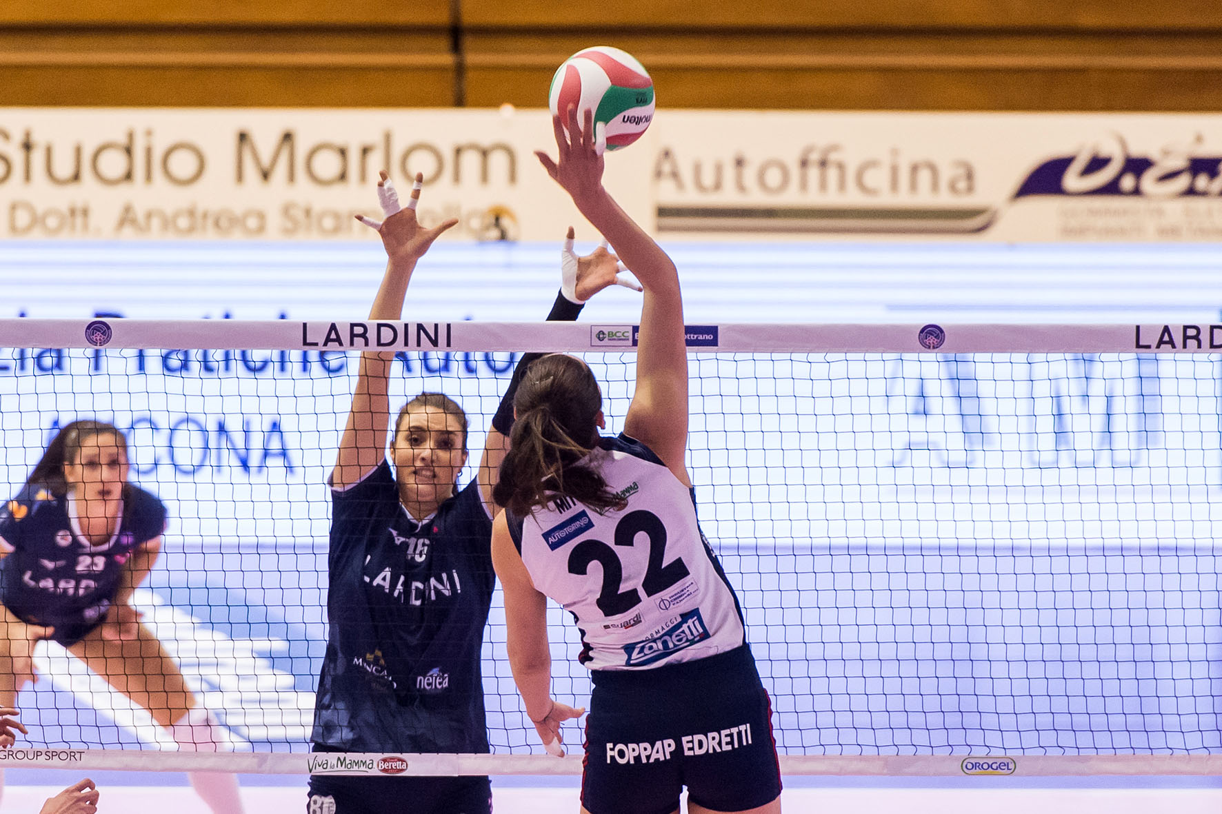 LaLardini Filottrano priva del suo capitano Laura Partenio colpita da un attacco influenzale (entrera’ solo nel secondo set ma senza incidere) lascia campo libero ad un’ottima Zanetti Bergamo capace di giocare una buona pallavolo ed esaltarsi sia in difesa che in attacco. È bastata un’ora alla squadra ospite per espugnare il Palatriccoli di Jesi tenendo percentuali importanti sia in attacco 45%, che in ricezione 67% ma soprattutto realizzando 7 aces e 8 muri.