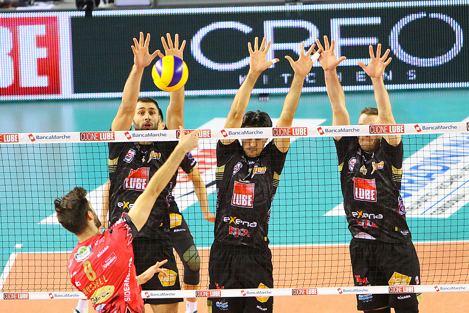 Il quarto set vede una Lube inarrestabile: dopo il 7 pari, i ragazzi di Blengini prendono le distanze dapprima con l’attacco vincente di Sokolov, poi con il muro di Cebulj sullo “zar” ed infine con il pallonetto di Cester che porta lo score della propria squadra a due cifre (10-8). Cebulj mette a terra altri due ace, prima quello del 14-10 e dopo quello del 17-10. Dopo il turno in battuta, entra al suo posto Grebennikov che, sul 18-12, permette a Christenson di sfoderare un attacco vincente inaspettato. L’opposto bulgaro va al servizio e con due ace porta i biancorossi al set point. Finisce 25-21.